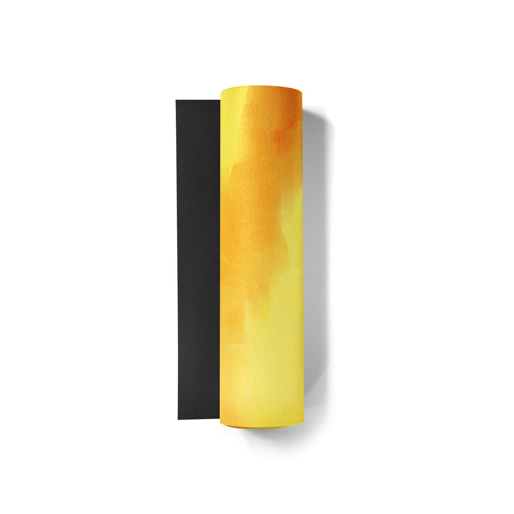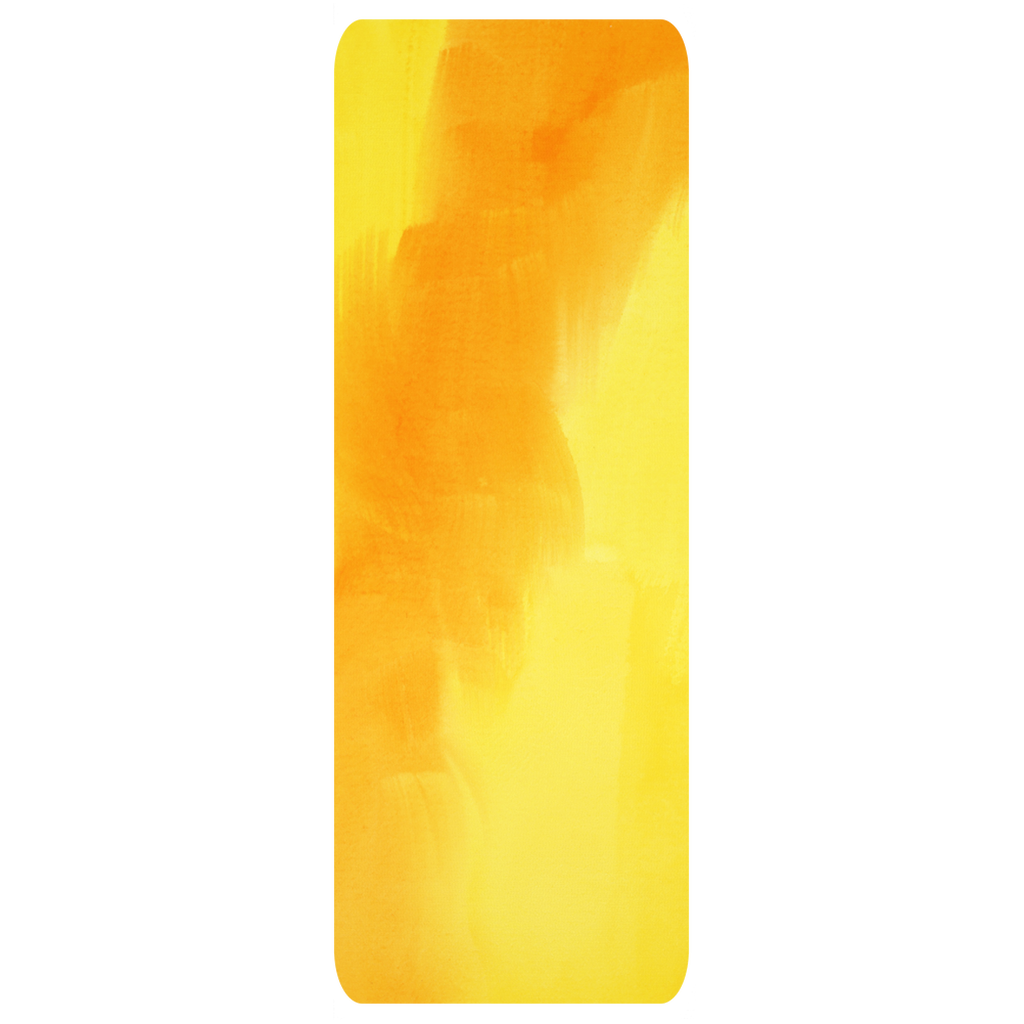 This yoga mat features a pretty sunset yellow and orange abstract painting by artist Erika Firm.