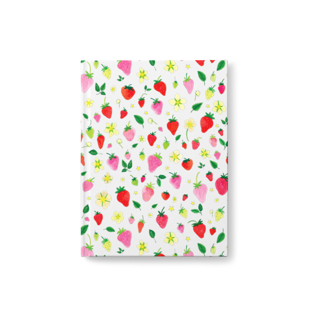This hardbound journal features a sweet strawberry pattern of watercolor strawberries by Erika Firm.
