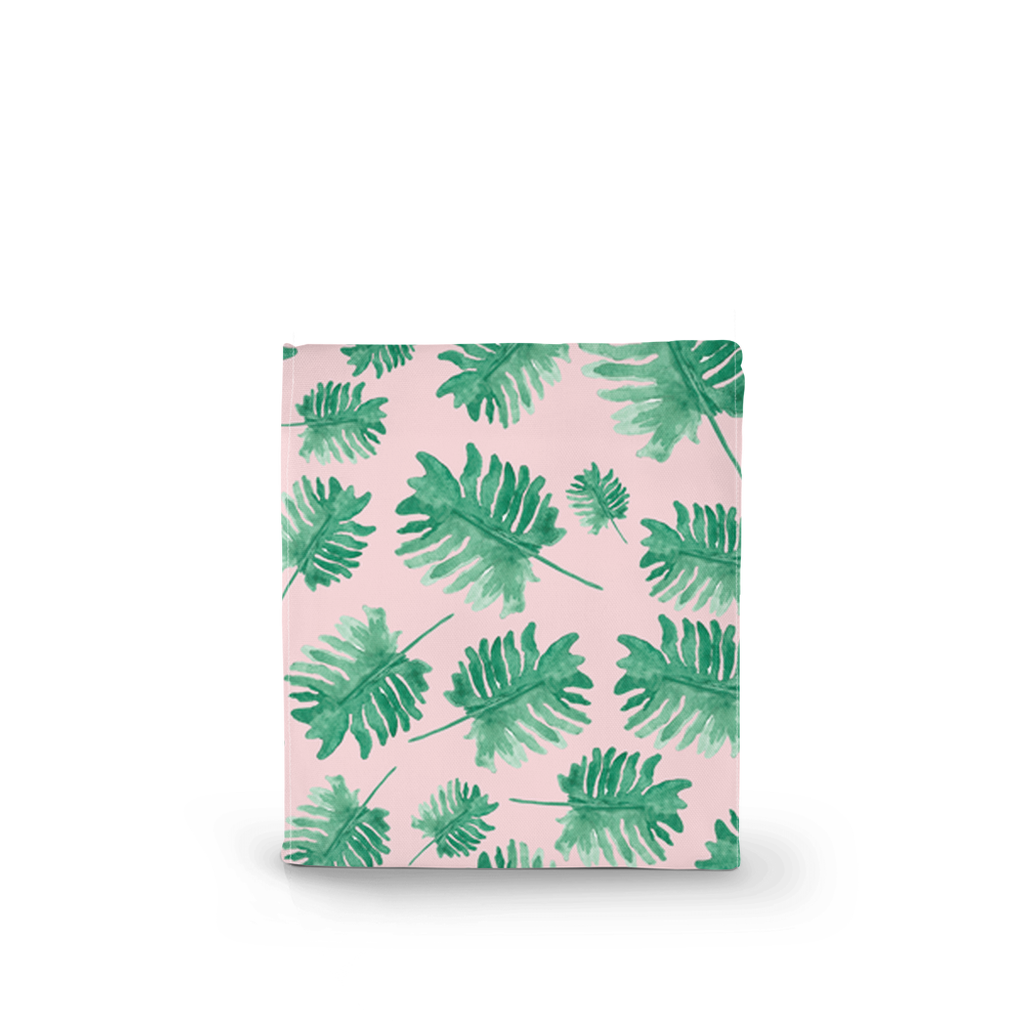 This reusable lunch bag features a watercolor monstera leaf pattern on blush pink background by Erika Firm.