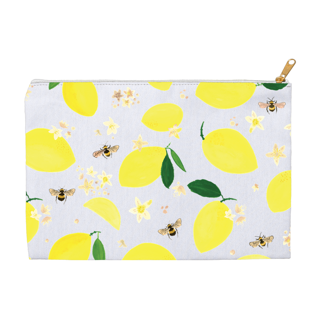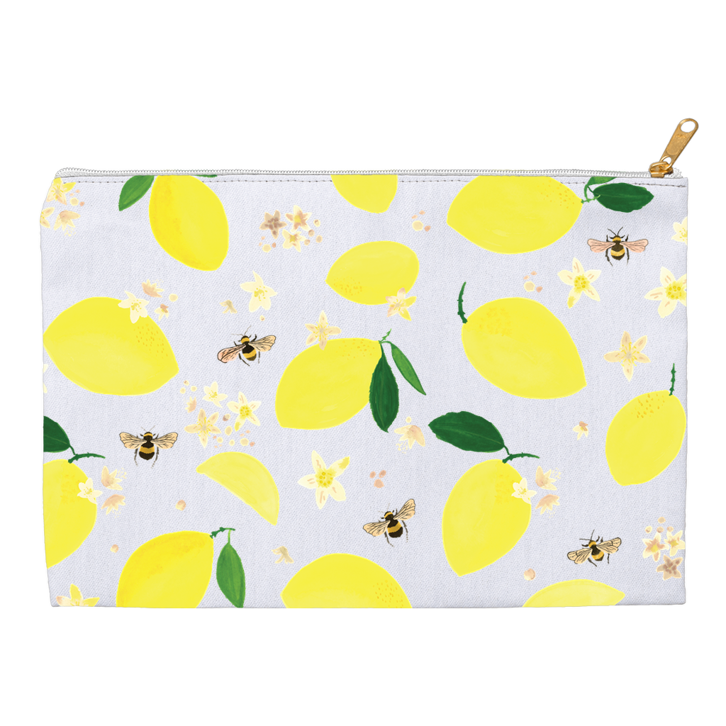 This pencil case and accessories pouch features a yellow lemon watercolor pattern by Erika Firm.