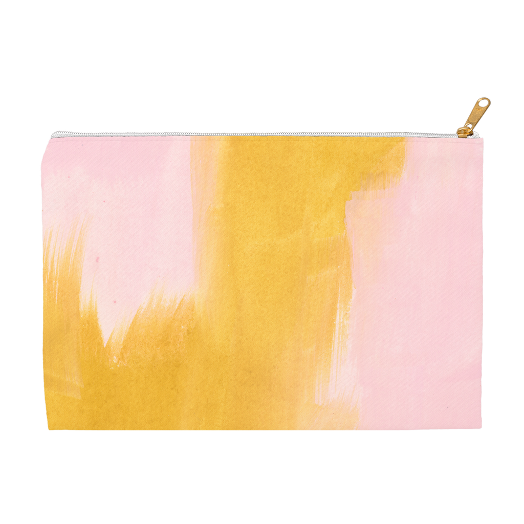 This cloth accessory pouch features a sweet cotton candy and marigold yellow abstract watercolor painting by Erika Firm.
