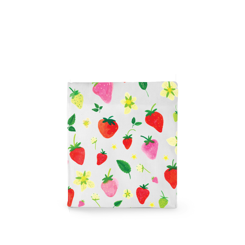 This reusable lunch bag features a strawberry watercolor illustration pattern by Erika Firm.