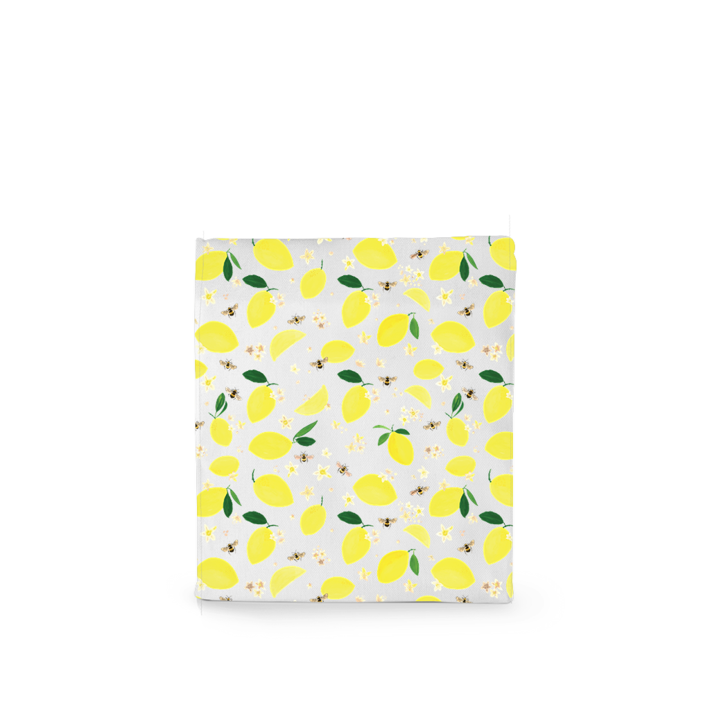 This reusable lunch bag features a lemons, lemon blossom and honey bee watercolor illustration pattern by Erika Firm.