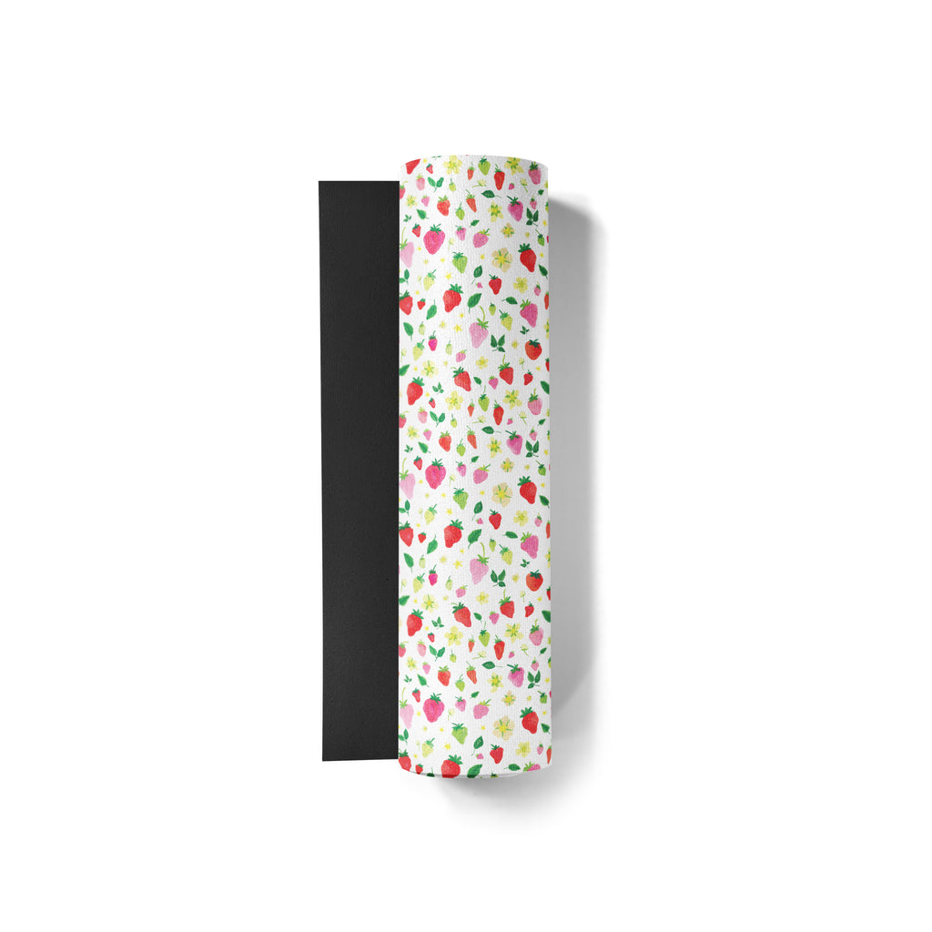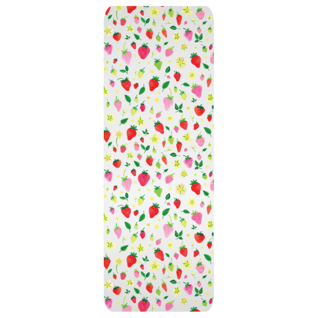 This yoga mat features a sweet red and pink strawberry pattern by Erika Firm.