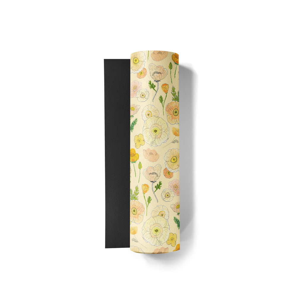 This yoga mat features charming California poppies illustrations by artist Erika Firm.