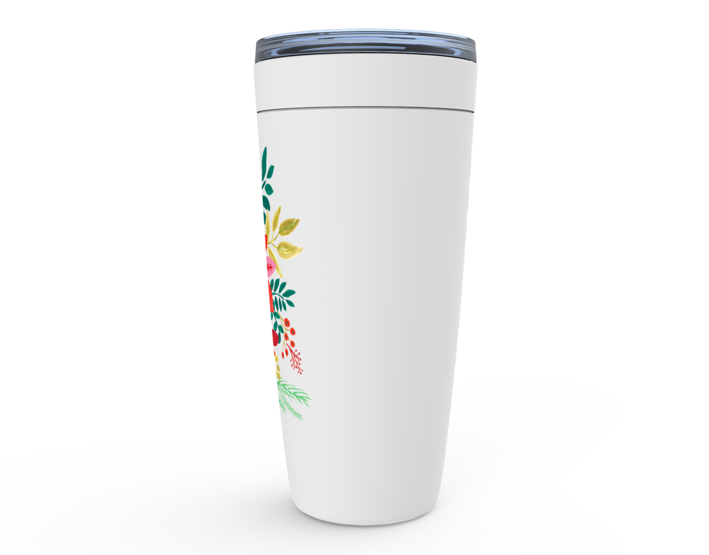 This festive travel mug is perfect for hot cocoa! Poinsettia illustration by Erika Firm.